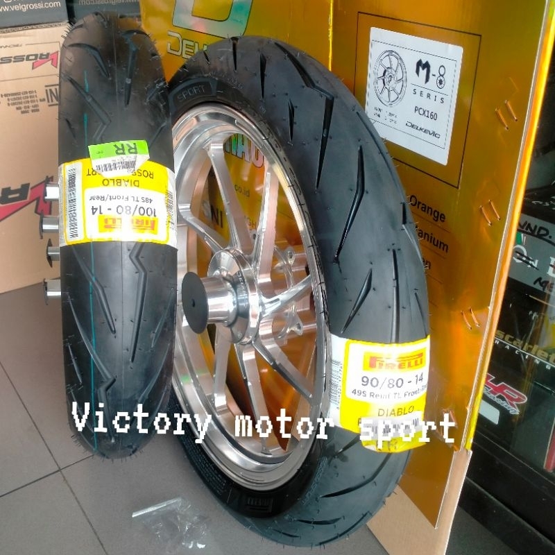 paket ban dan velg delkevic m8 ring 14 namx old aerox nmax new PCX 150 cbs PCX 160 vario 125 150 beat scoopy stylo cbs mio sporty mio smlie mio m3 mio z ban Pirelli Diablo Rosso sport