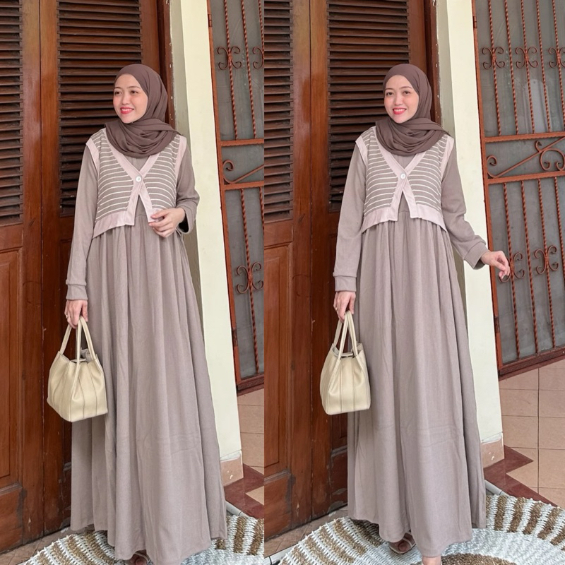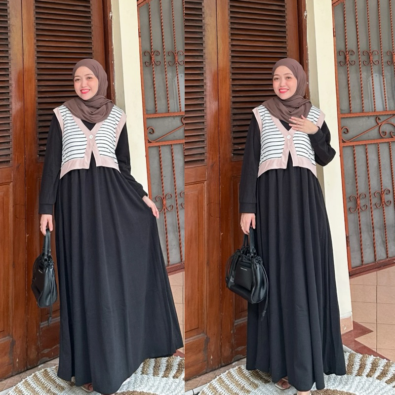 DP 0 Sellena Dress Muslimah Gamis Midi Terbaru Baju Daily Motif dan Polos Lembut Outfit Kekinian