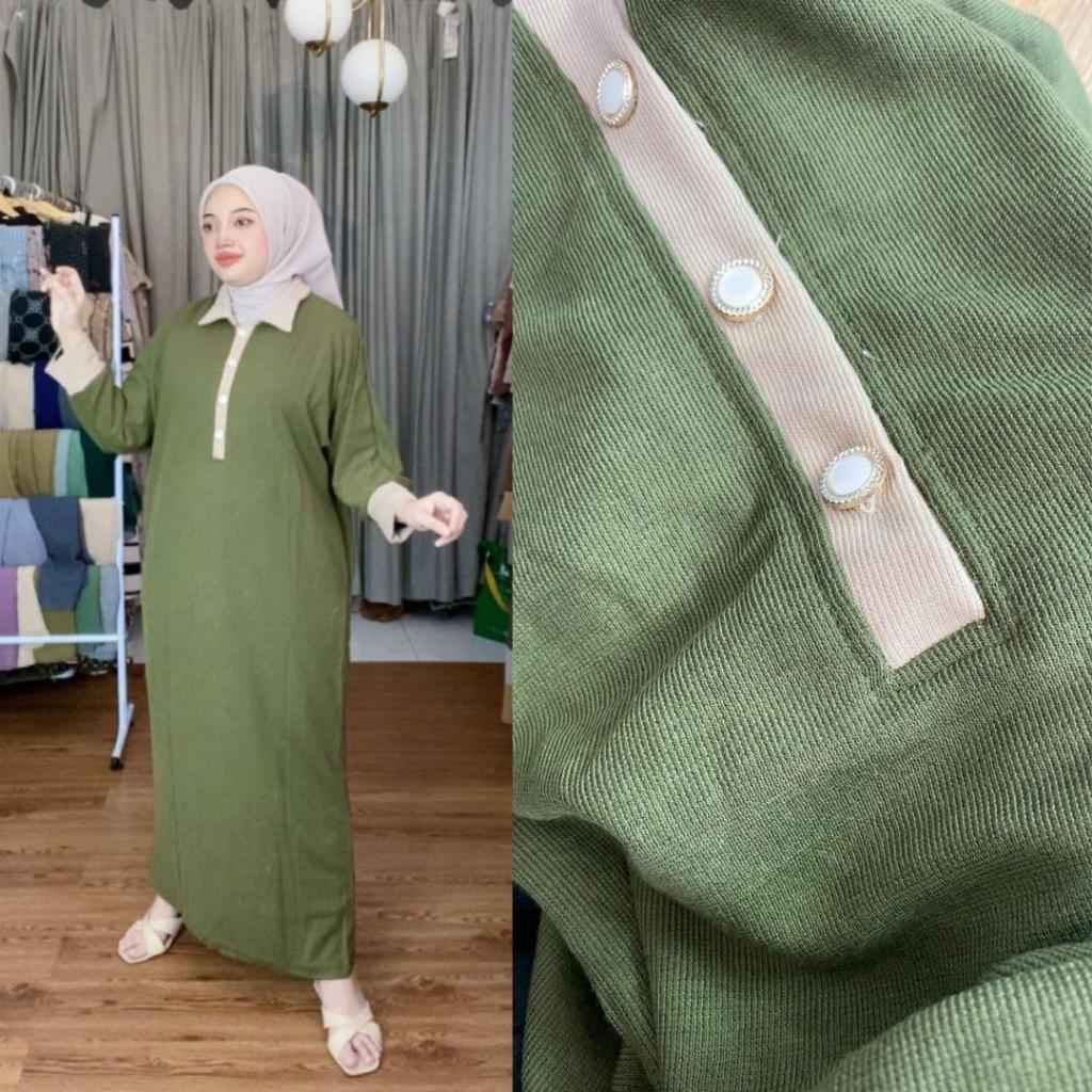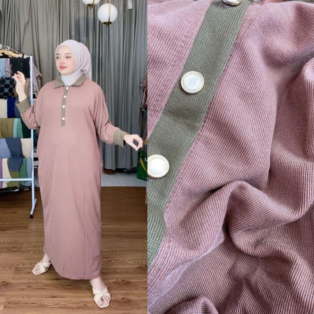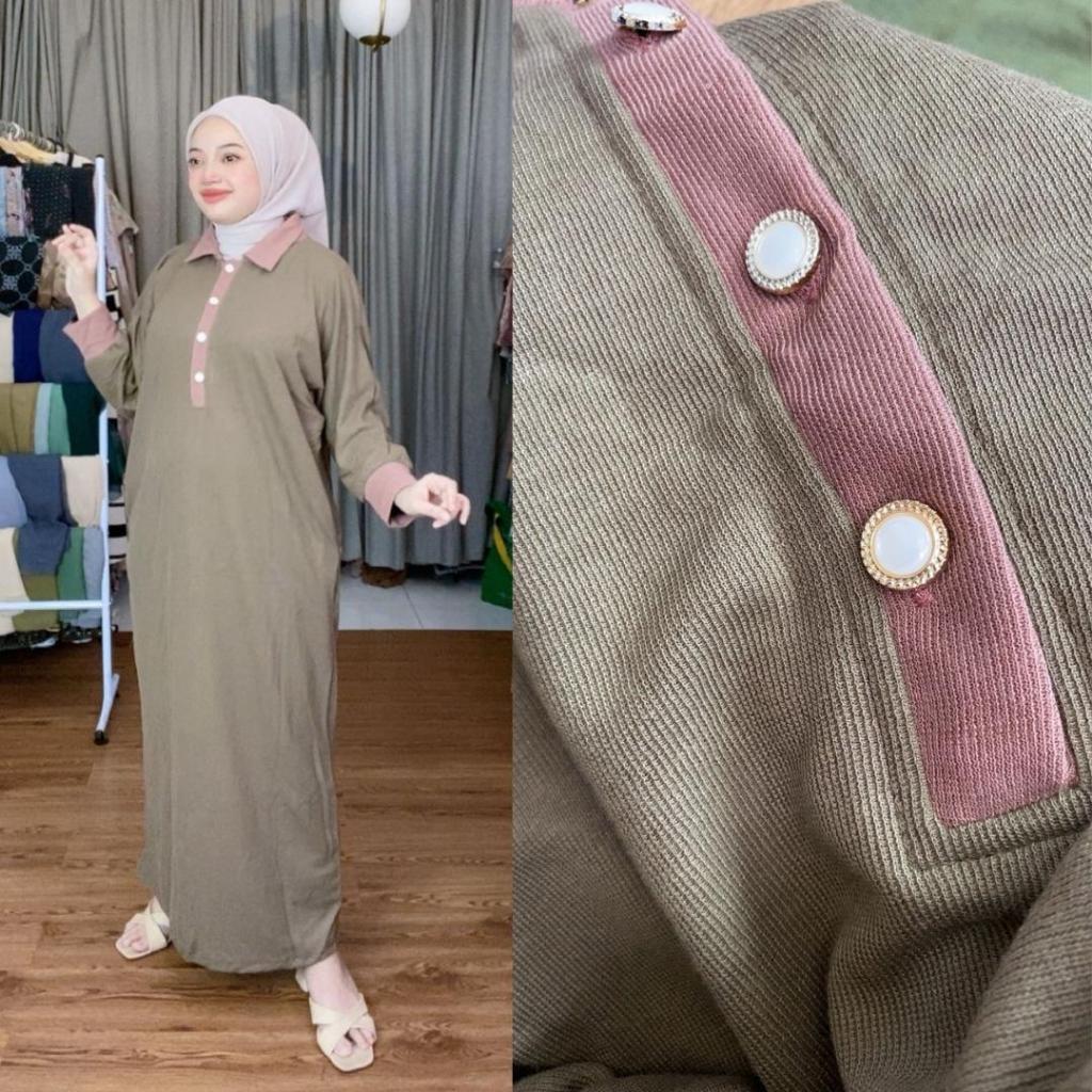 DP 0 Amara Dress Muslimah Gamis Terbaru collection Baju Daily Knit Mewah Bordir Motif Polos Jubah
