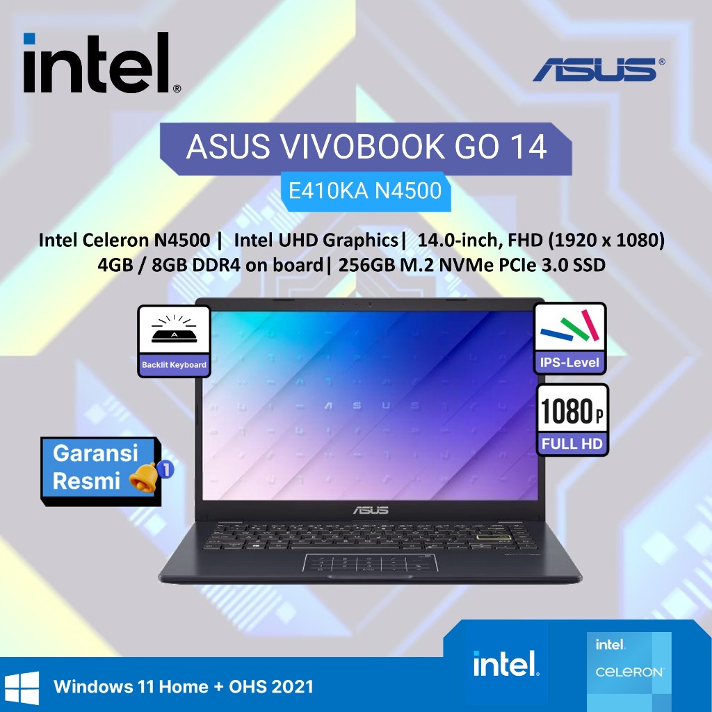 ASUS vv000BOOK GO 14 E410KA N4500 8GB 256GB 512GB W11+OHS 14.0FHD BLIT BLU -FHD455