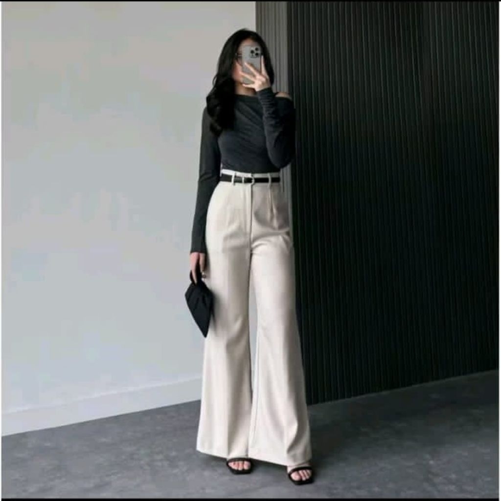 ETTA PANTS – Celana Flare Wanita Highwaist Kekinian – Kulot Cutbray Celana Kerja Bahan Anti Kusut
