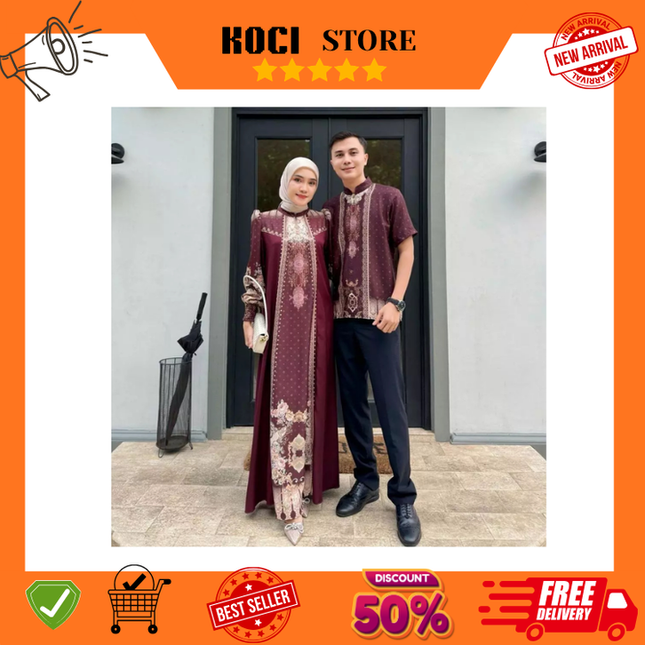 Couple Pasangan Lebaran Sarimbit Kayrina Baju Muslim Kondangan Motif Printing Lebaran 2026
