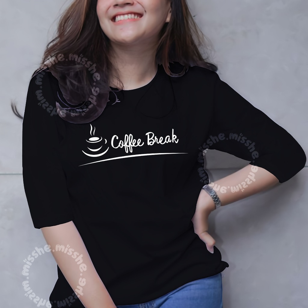 ID - Tshirt Raglan 3/4 Motif DTF coffee breaks / Kaos Katun Wanita / Baju Kaos Wanita Terbaru 2024 / Kaos Polos Wanita