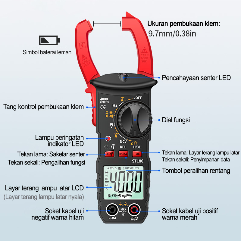 DL ST180 Digital Clamp Meter tang ampere multitester digital Kabel Tester Ukur Arus Tegangan Listrik AC DC