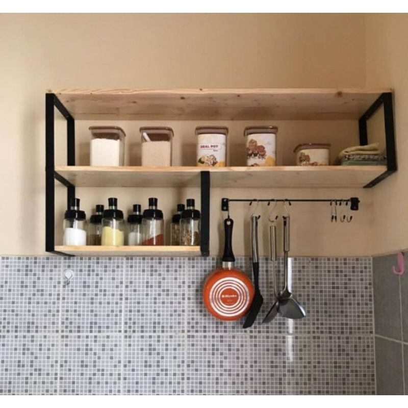 Kitchen Set Rak Dapur Serbaguna / Rak Dinding Bumbu Dapur / Rak Penyimpanan Serbaguna / Rak Gantung Besi Kayu / Rak 3 Su