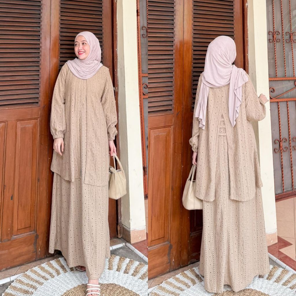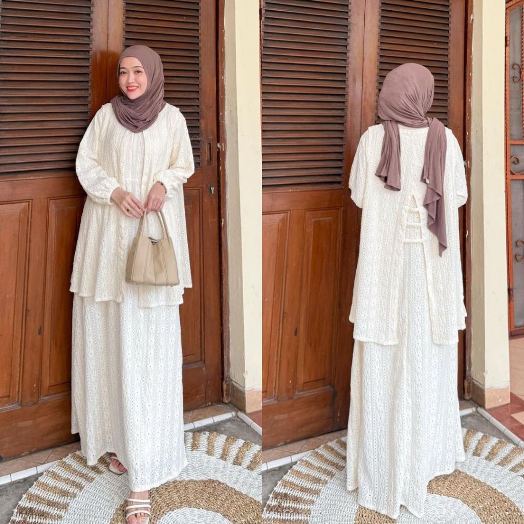 DP 0 [TERFAVORITE] Fateema set 2In1 Dress Outer Lepas Pasang Raya Set Premium Kekinian 2025 Baju Busui Daily Muslim Wanita Dress