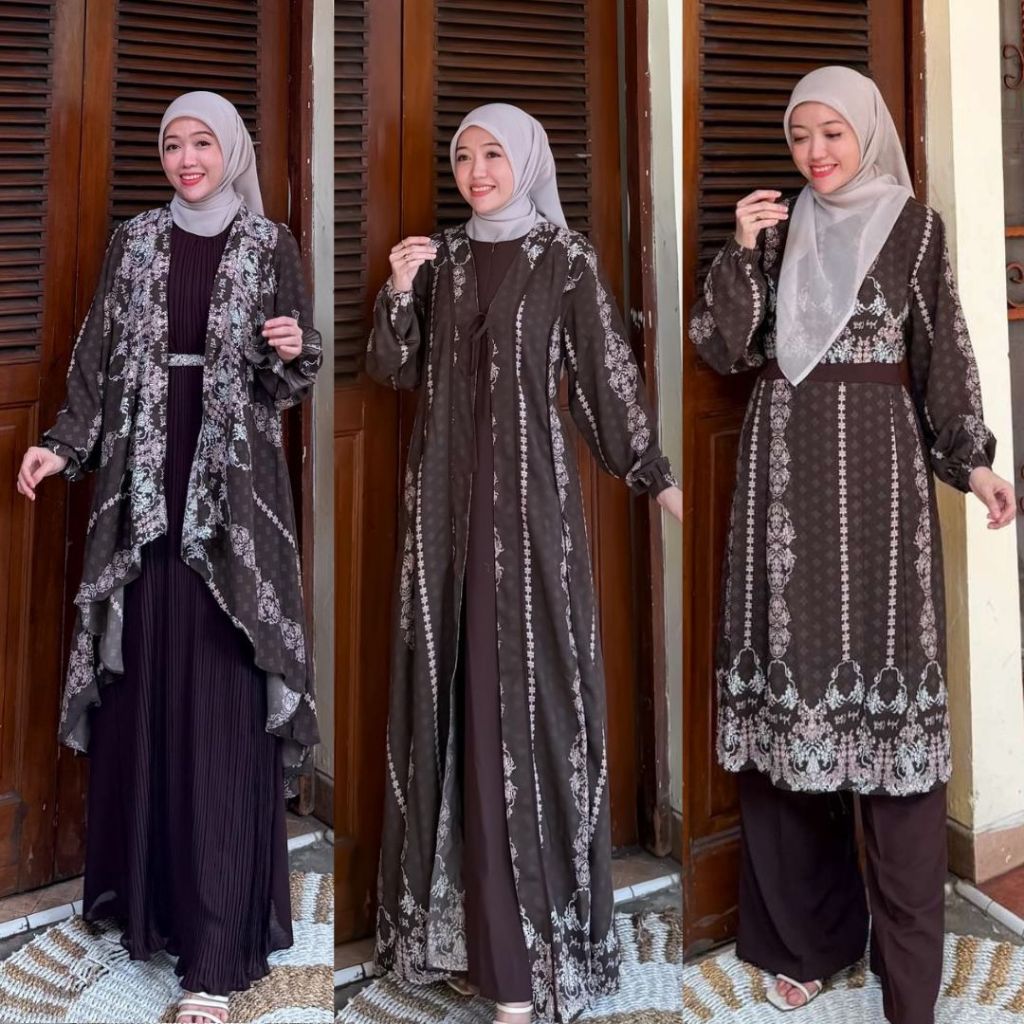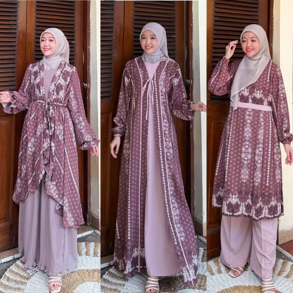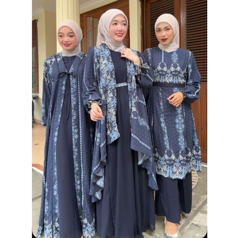 DP 0 Aysha Raya Series Dress Seragaman Keluarga Elegant Baju Raya Gamis Lebaran Kondangan Musilmah Terbaru Motif Printing Outfit Kondangan Pest