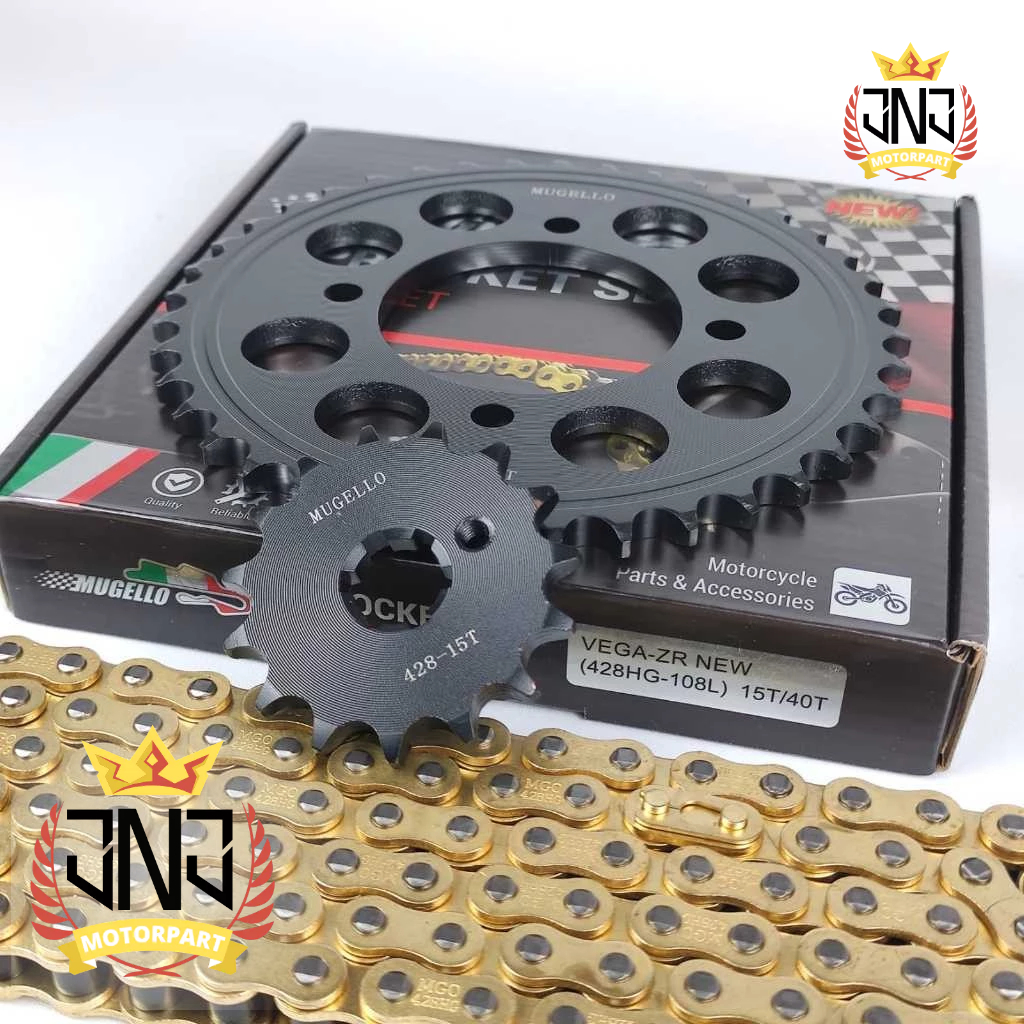 GEAR PAKET BAJA YAMAHA VEGA ZR - VEGA ZR NEW - VEGA RR - VEGA FORCE FI INJEKSI - JUPITER Z ROBOT 2010-2012 15/40T 428HG - 108L GIR SET MUGELLO [JNJ]