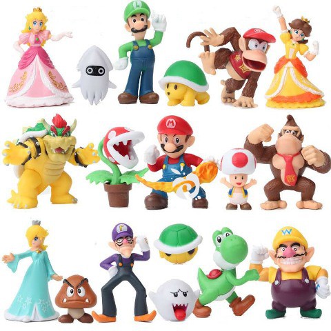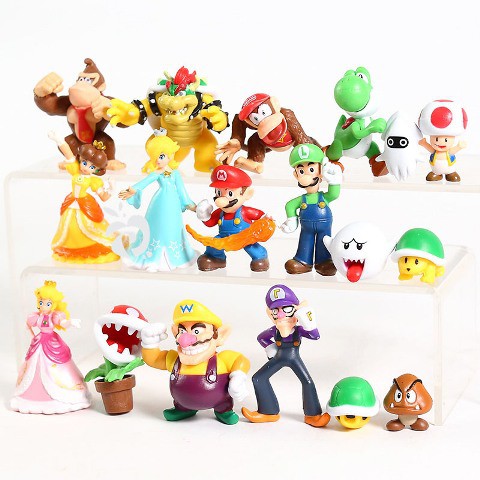 Super Mario Bros Figure Set isi 18 Mainan Pajangan Miniatur Hiasan Topper FG705