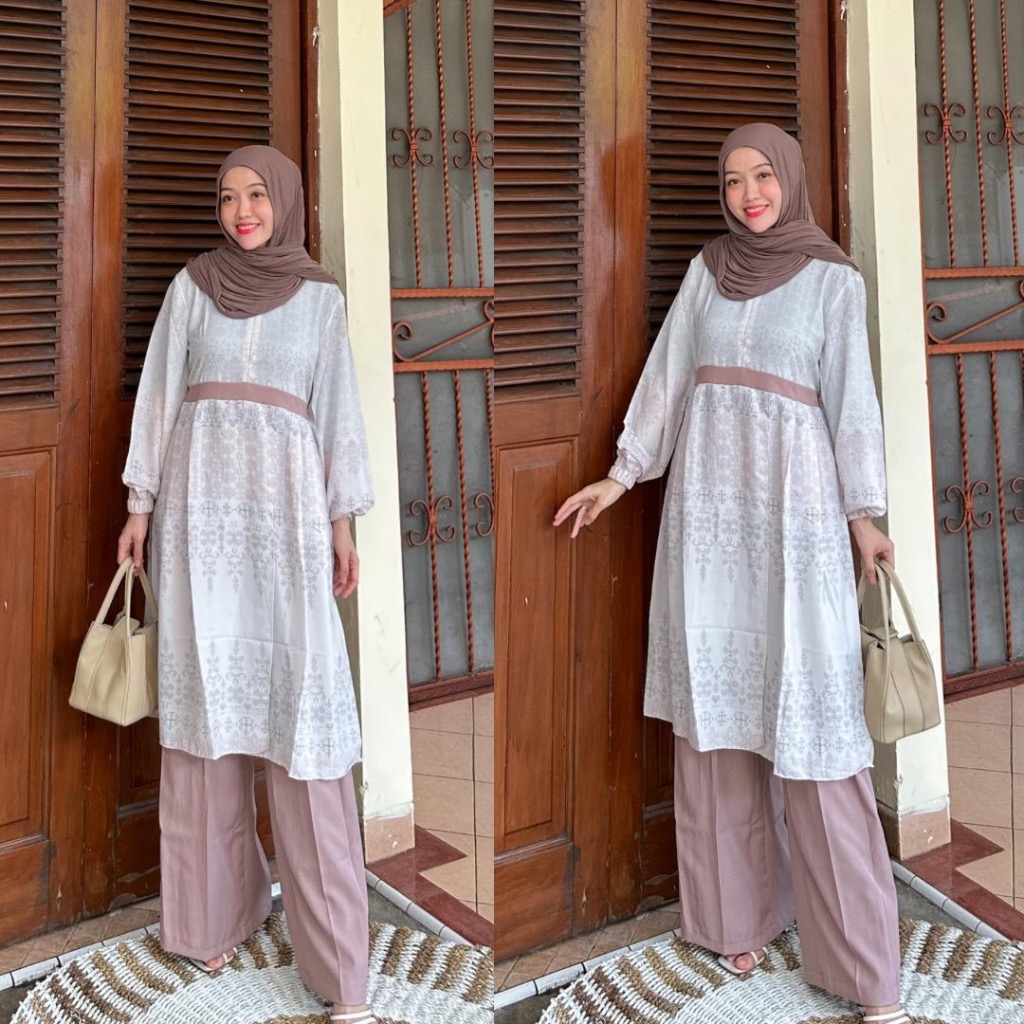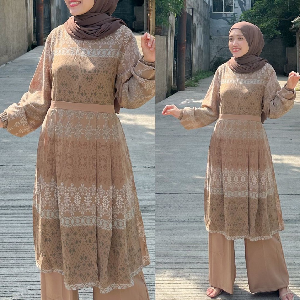 DP 0 Andini One set Dress Setelan Celana Lionel Richie Premium Set Motif Terbaru Mewah Baju Pesta Kondangan Outfit Muslim Lebaran Wanita Terpop