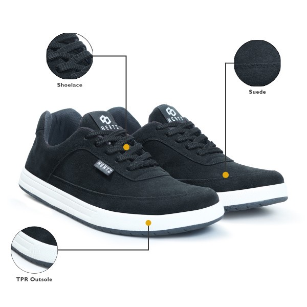 Hertz - Sepatu Sneakers Pria H 3276 Kets Laki Kuliah Kerja Jalan Terbaru Harga murah Berkualitas Warna Hitam