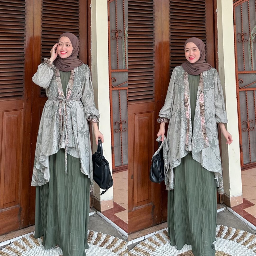 DP 0 Seragam Motif 58 Nadine Sabhira Kaftan Adeeva Lionel Richie Edisi Raya 2025 Gamis Musilmah Terbaru Motif Printing Kondangan P