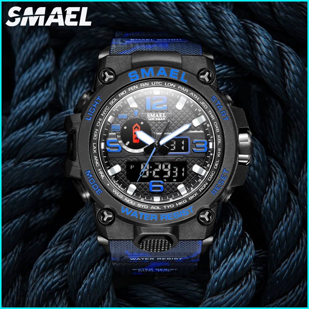 Smael 1545d Original Jam Tangan Sport Analog Digital Pria Wanita Multifungsi Tali Silikon Tahan Air Bercahaya