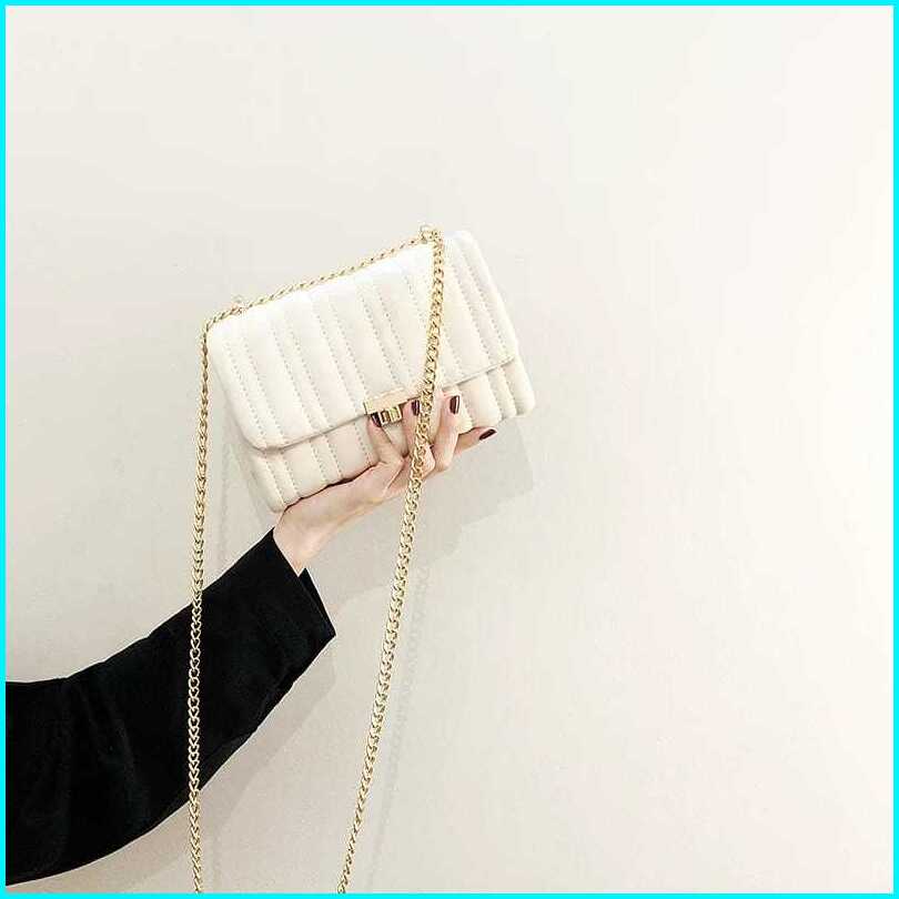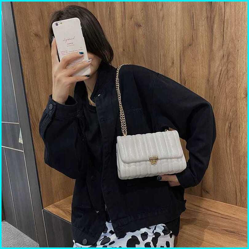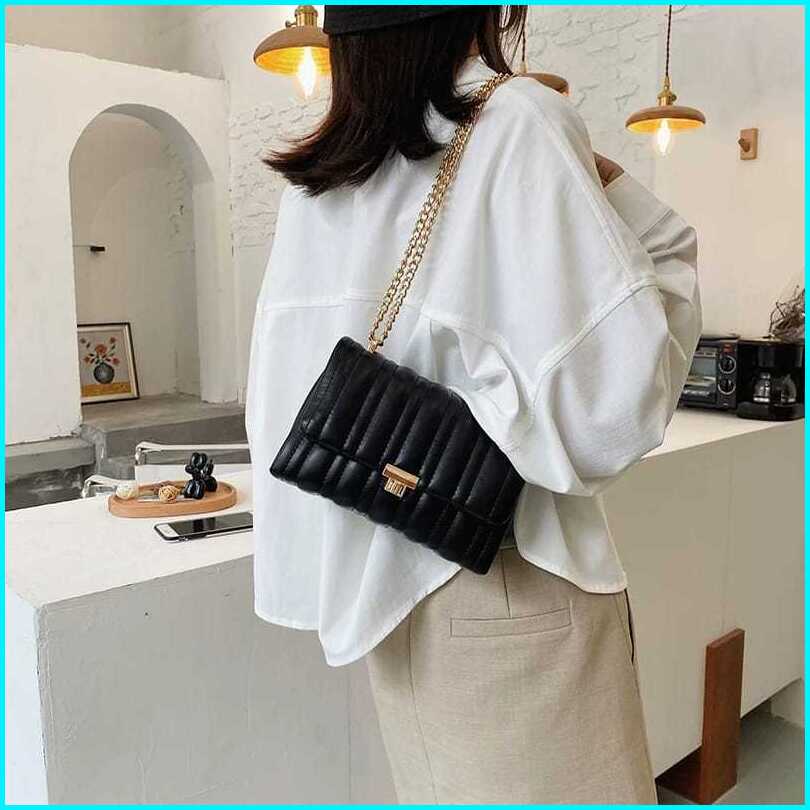 Tas Wanita Lattice Bag Tali Rantai Hitam Mengkilap Kapasitas Muat Hp Sling Bag Trend 2025