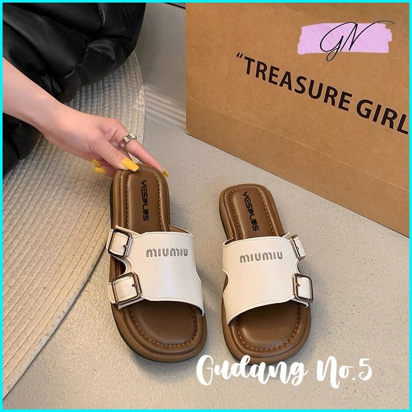Gn-820-2 Sandal Selop Flat Jelly Antislip Model Miu Miu Teplek Wanita Import Pcu Terbaru