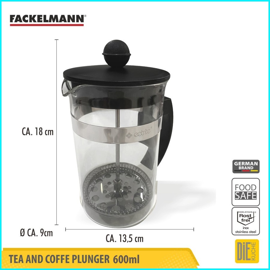 Fackelmann French Press 600 Ml Coffee Tea Plunger Kaca Borosilikat Anti Panas Dan Filter Stainless