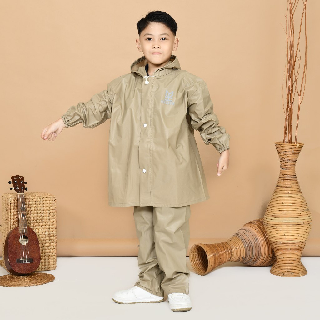 Jas Hujan Kevatie Rainwear Jas Hujan Anak Kevatie Setelan Cream/Jas Hujan Sekolah Anak Sd Dan Smp/Jas Hujan Setelan Anak
