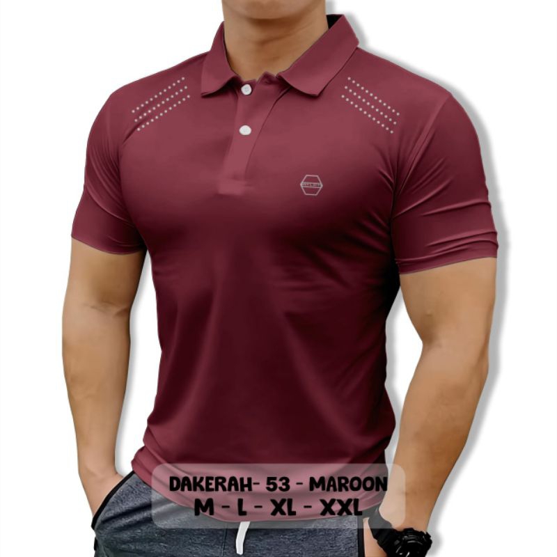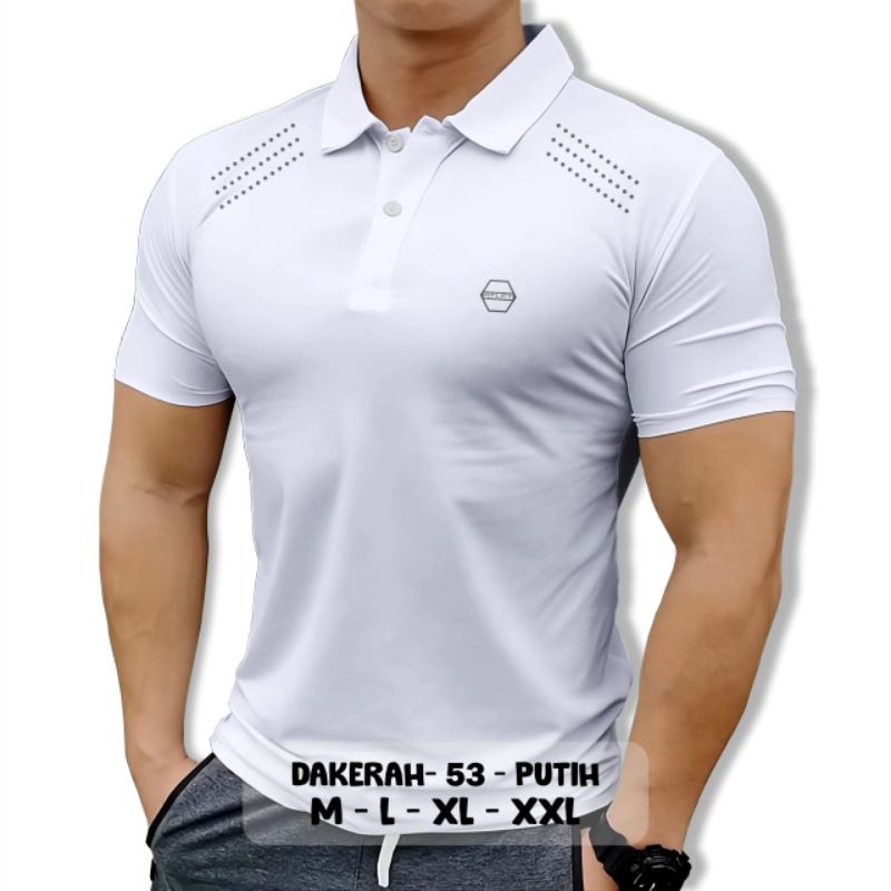 Kaos Olahraga Pria Gym Fitnes Running Kerah Kancing Lentur adem