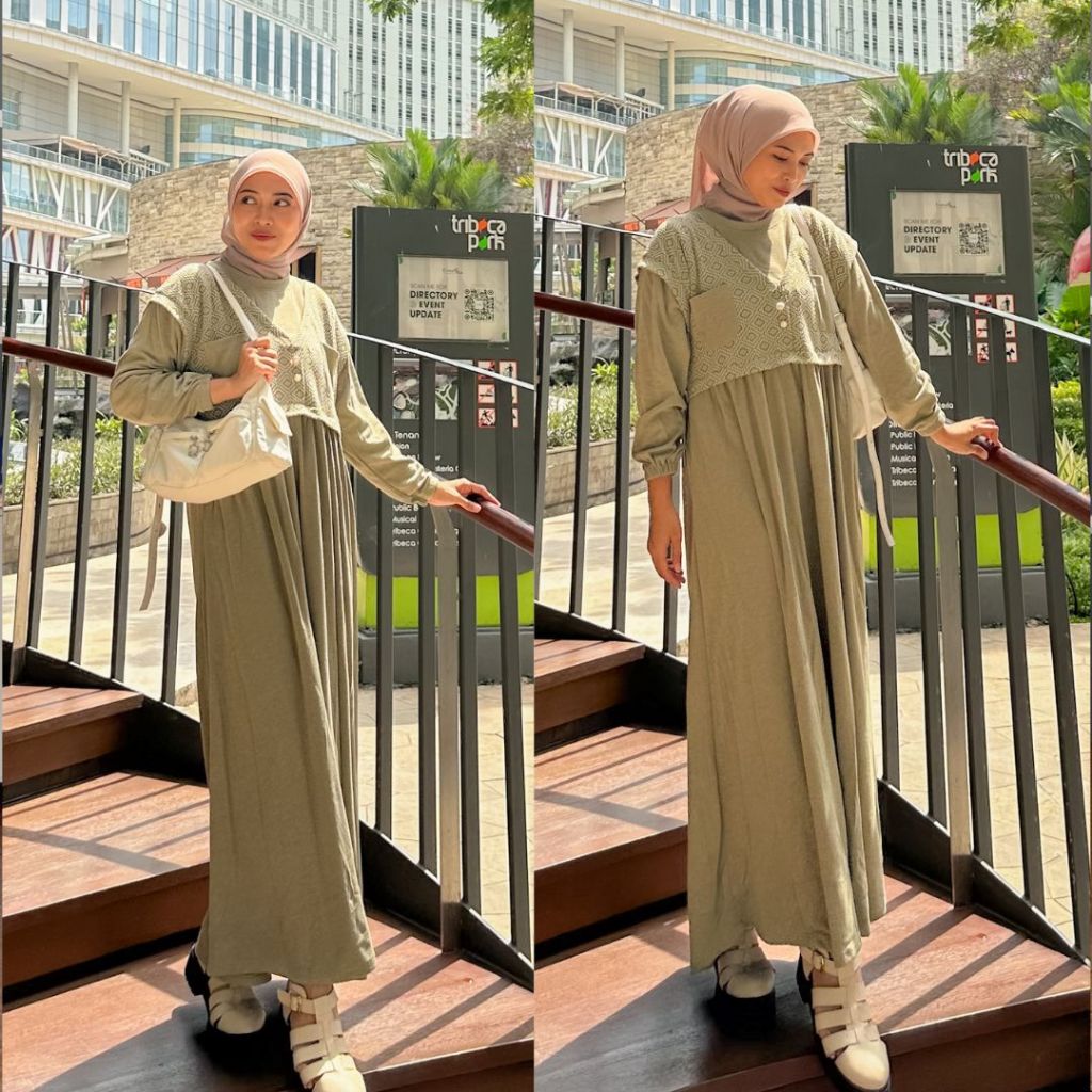 DP 0 Raisya Dress Muslimah Gamis Terbaru collection Baju Daily Motif Polos Knit outif Simpel