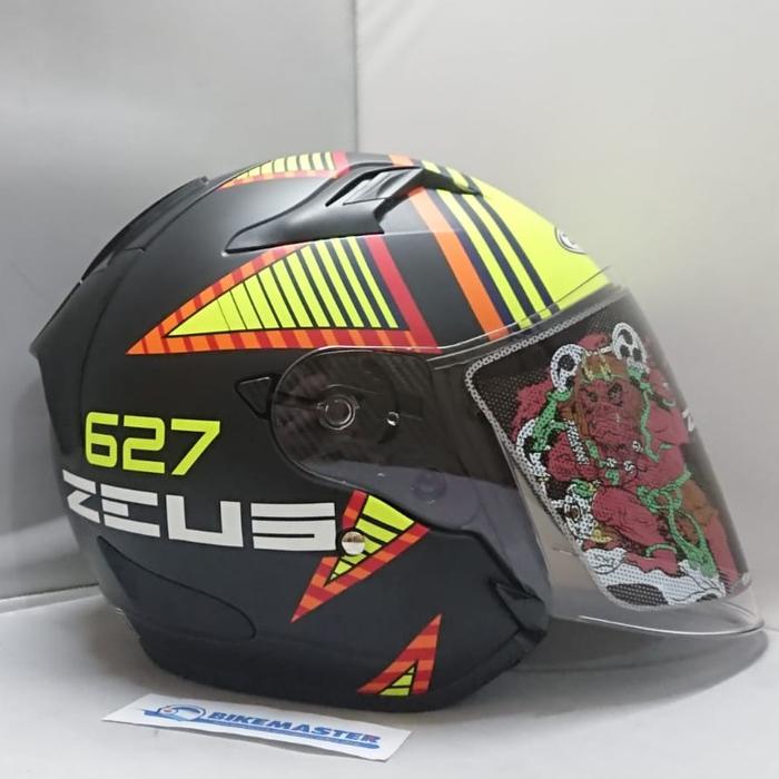 Helm Zeus ZS-627 Matt Black BM10 Black Yellow Half Face - L
