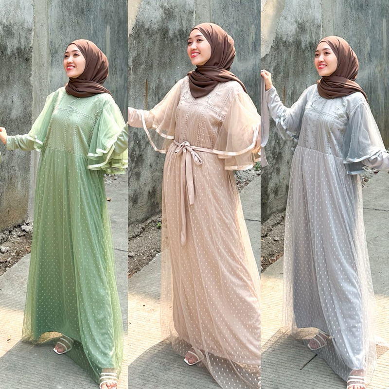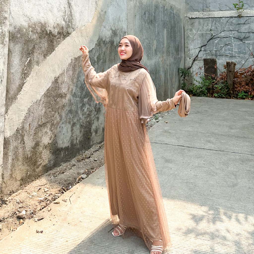 DP 0 Tara Brucat Dress Muslimah Baju Kondangan Gamis Pesta Mewah Dewasa Remaja Gaun