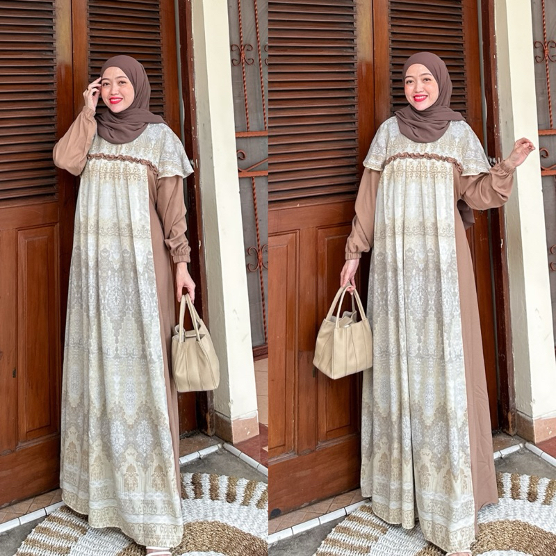 DP 0 Elena Nara Dress Gamis Premium Lionel Richie kekinian Motif Terbaru Mewah Baju Pesta Kondangan Outfit Muslim Lebaran Wanita Terpopuler Baj