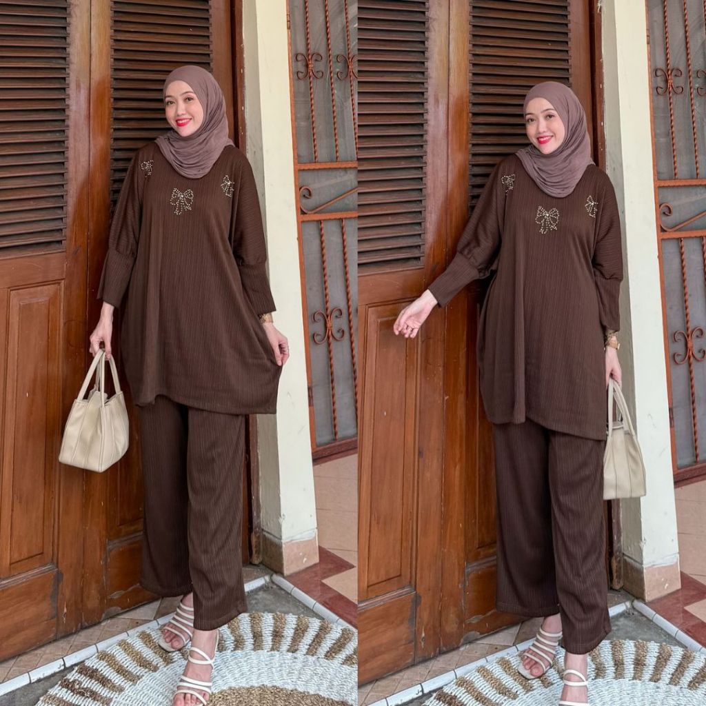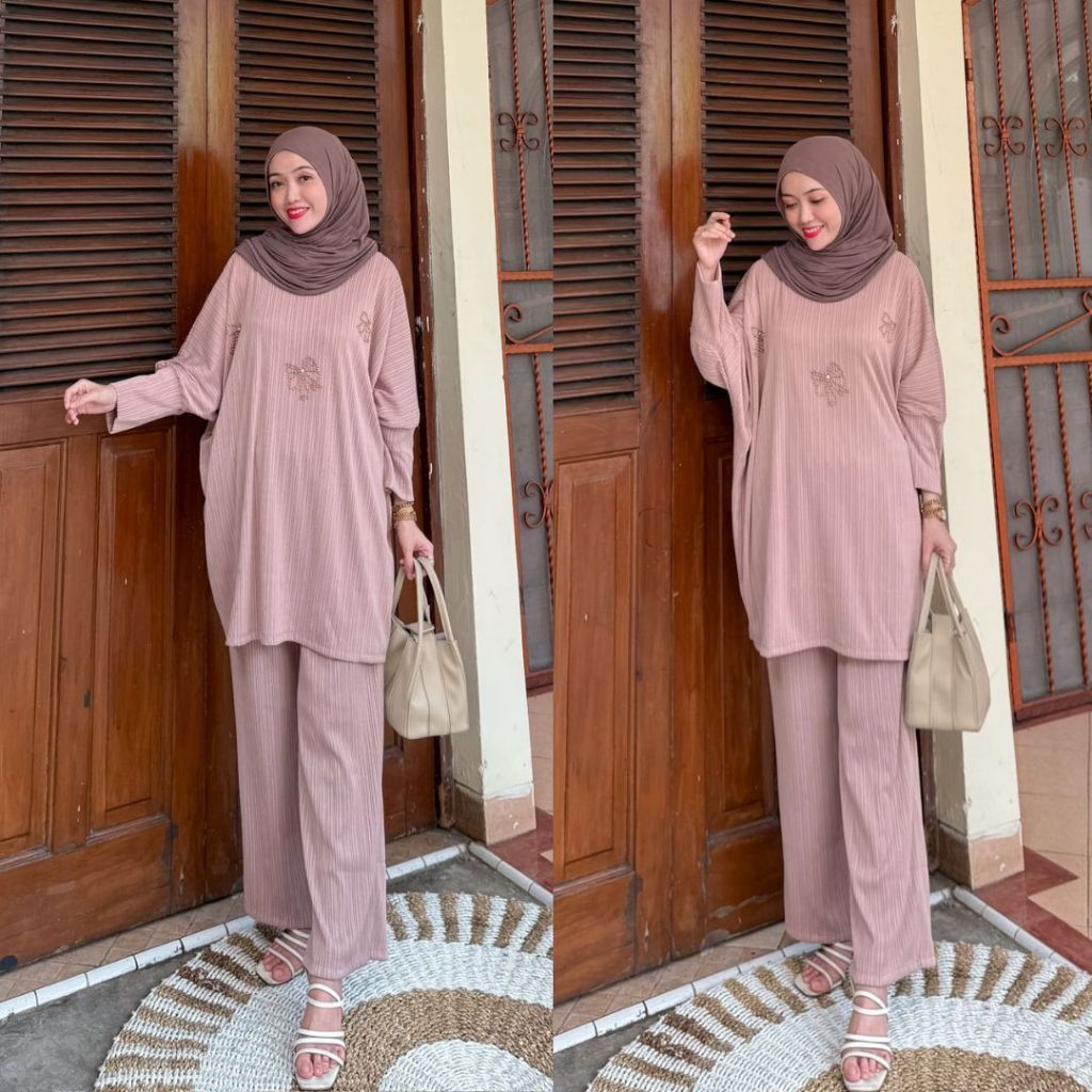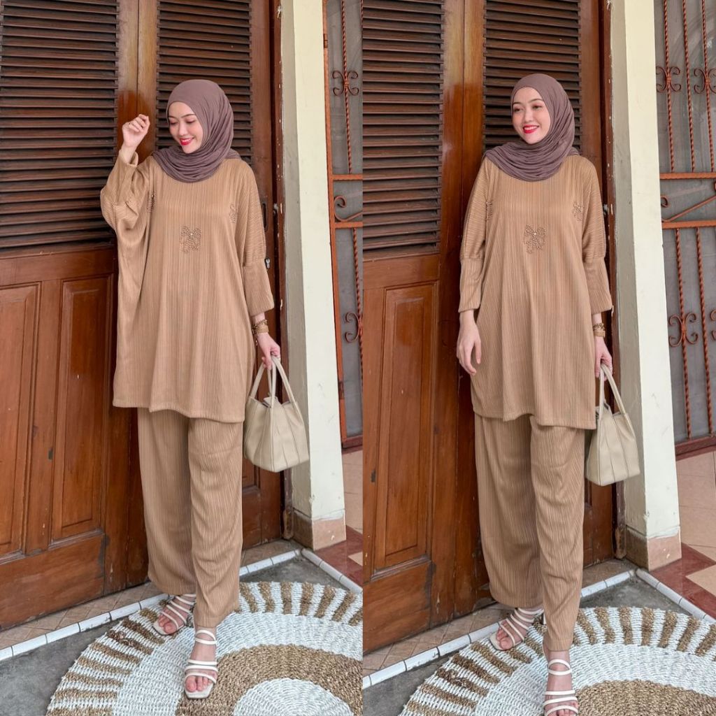 DP 0 New Arrival Erika SetCelana Outfit Daily Kondangan Elegant Bridesmaid OneSet dan Atasan Knit Wanita Muslimah Mewah Wudhu