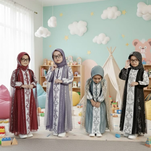 Gamis Eliza Rompi Brukat Usia 3-10 Tahun // Gamis Anak Perempuan Saku Depan Matt Jeans Mix Br