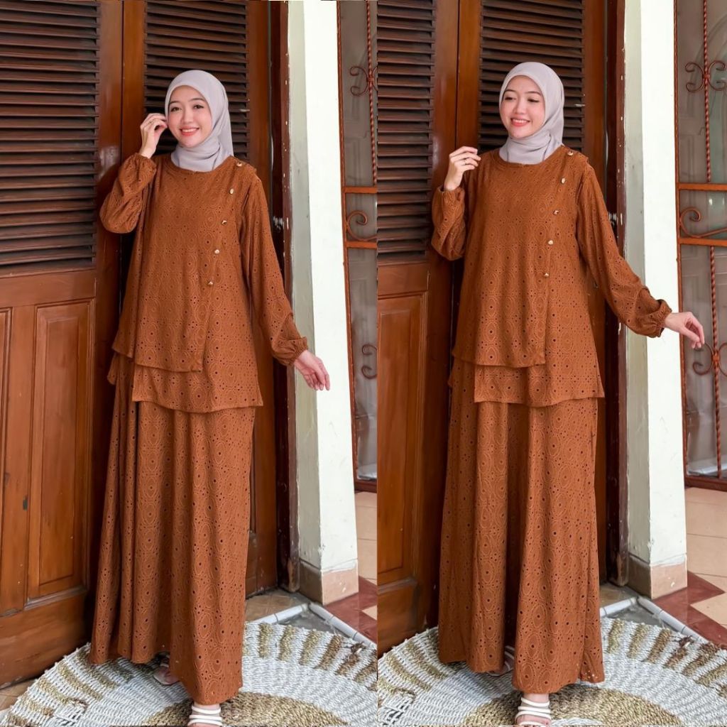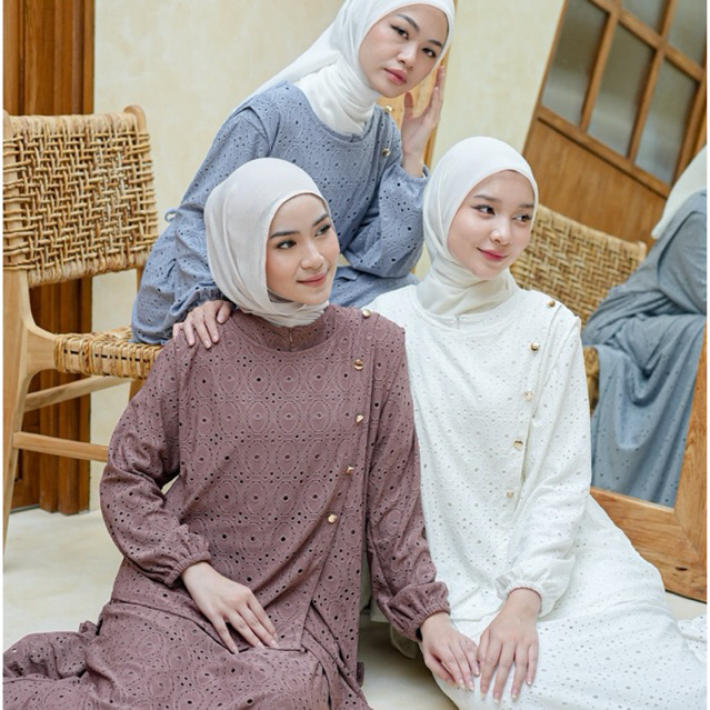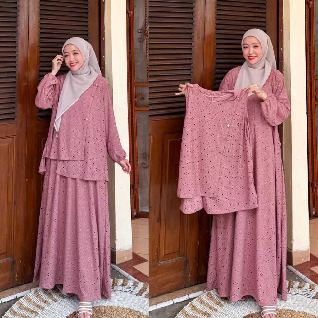 DP 0 New Arrival Aznii DressOuter 2 In 1 Baju Busui Outfit Kondangan Elegant Muslimah Wanita Setelan Lembut Gamis Kancing Wudhu Panjang Bordi