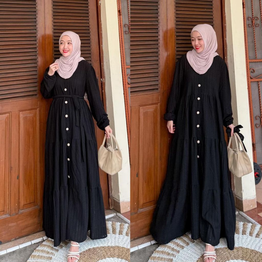 DP 0 [PRODUK BARU] Adeline Gamis Outfit Kondangan Elegant Muslimah Baju Busui Wanita Lembut Gamis Kancing Wudhu Panjang Dress Atasan Bumil Rema