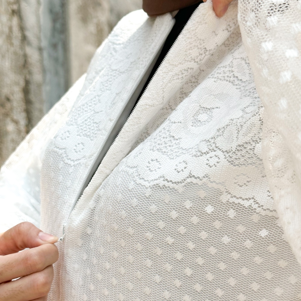 DP 0 White Amanda Brukate Dress Muslim Gamis Kondangan Pesta Busui Gamis Sergaman Bridesmaid