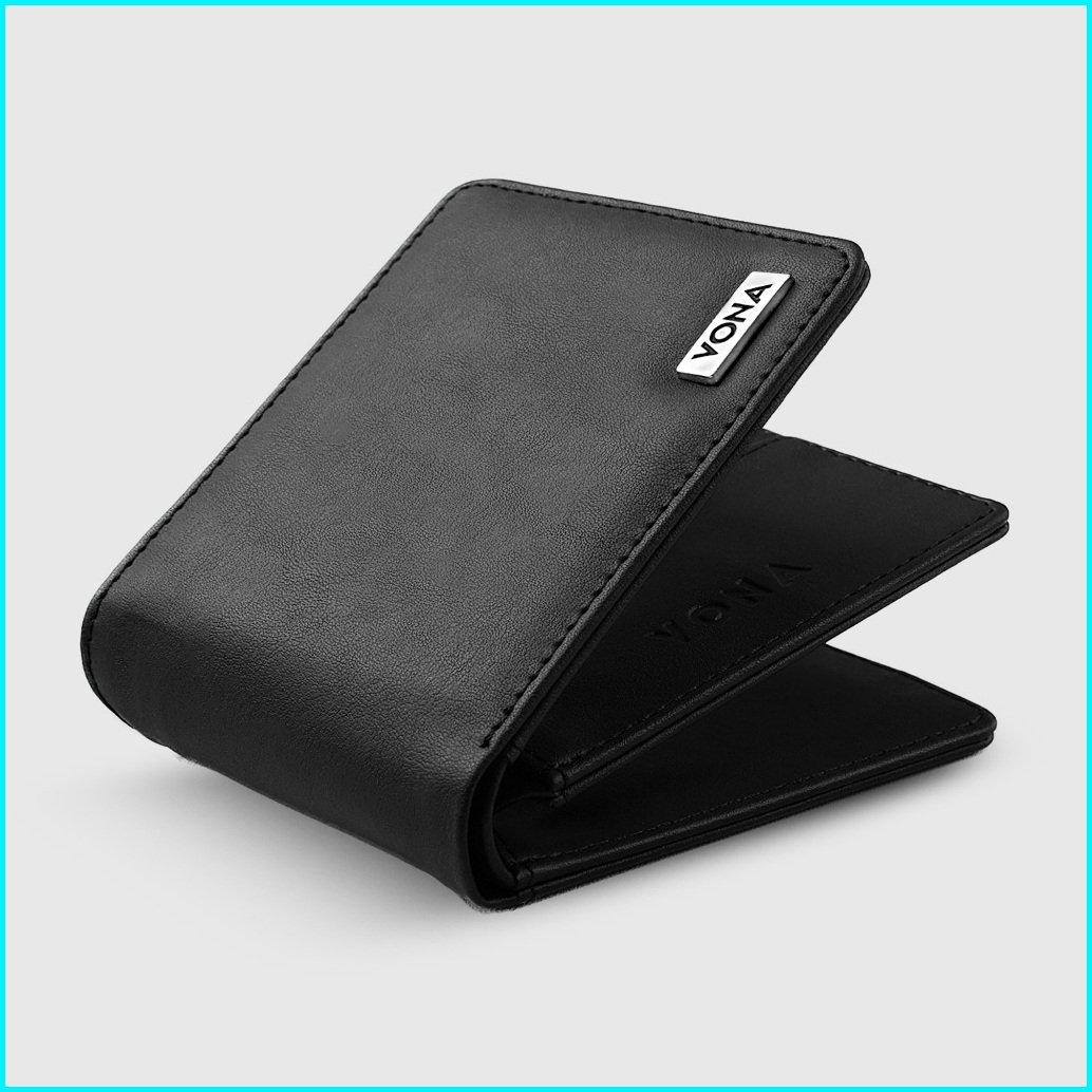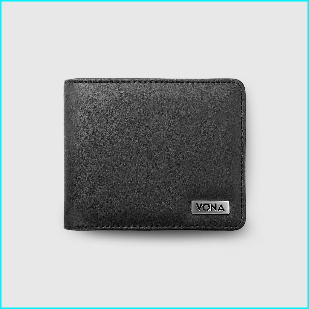 Vona Loxley Wallet - Dompet Pria Lipat Pendek 3 Ruang Extra Slot Kartu Kulit Pu Polos