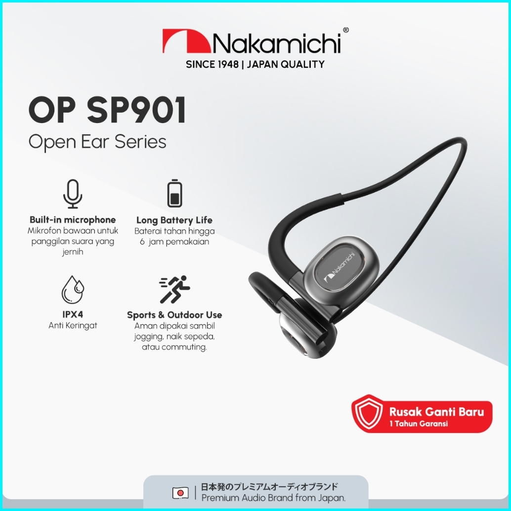 Nakamichi Op Sp901 Open Ear Air Conduction Ipx4 Sport Headset Bluetooth Anti Keringat