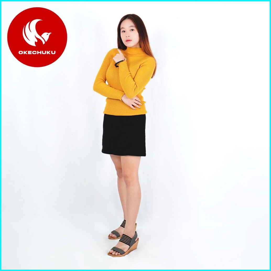 Okechuku Elza - Sweater Rajut Sweter Leher Tinggi Knit Switer Korean Style