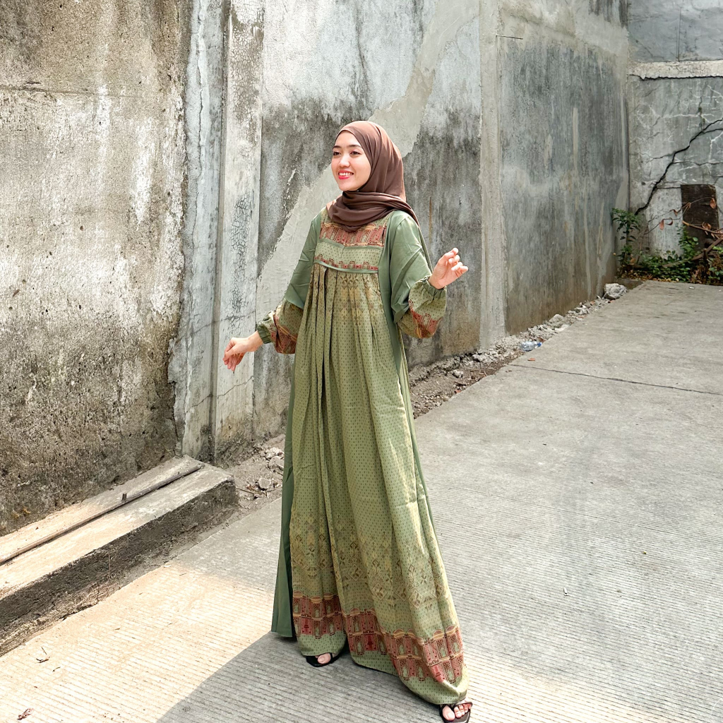 DP 0 Ameena Dress Gamis Premium Motif Terbaru Mewah Baju Pesta Kondangan Seragam Lebaran Set Keluarga Kembaran Couple Baju Jumbo Fit XXL Outfit