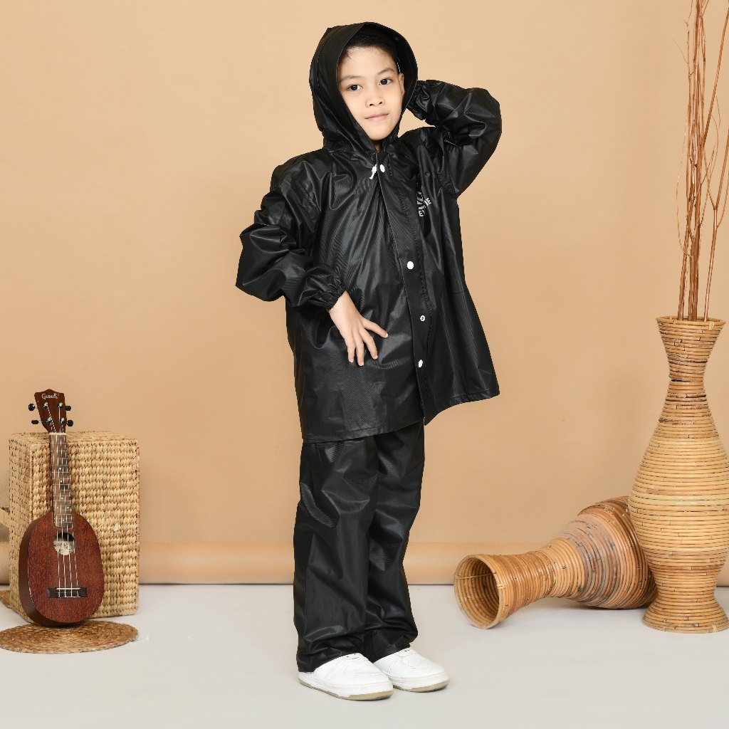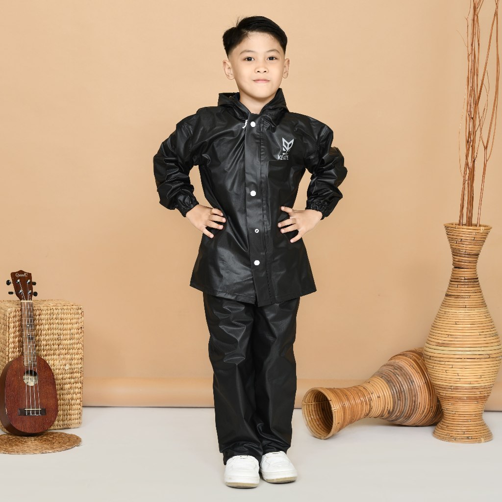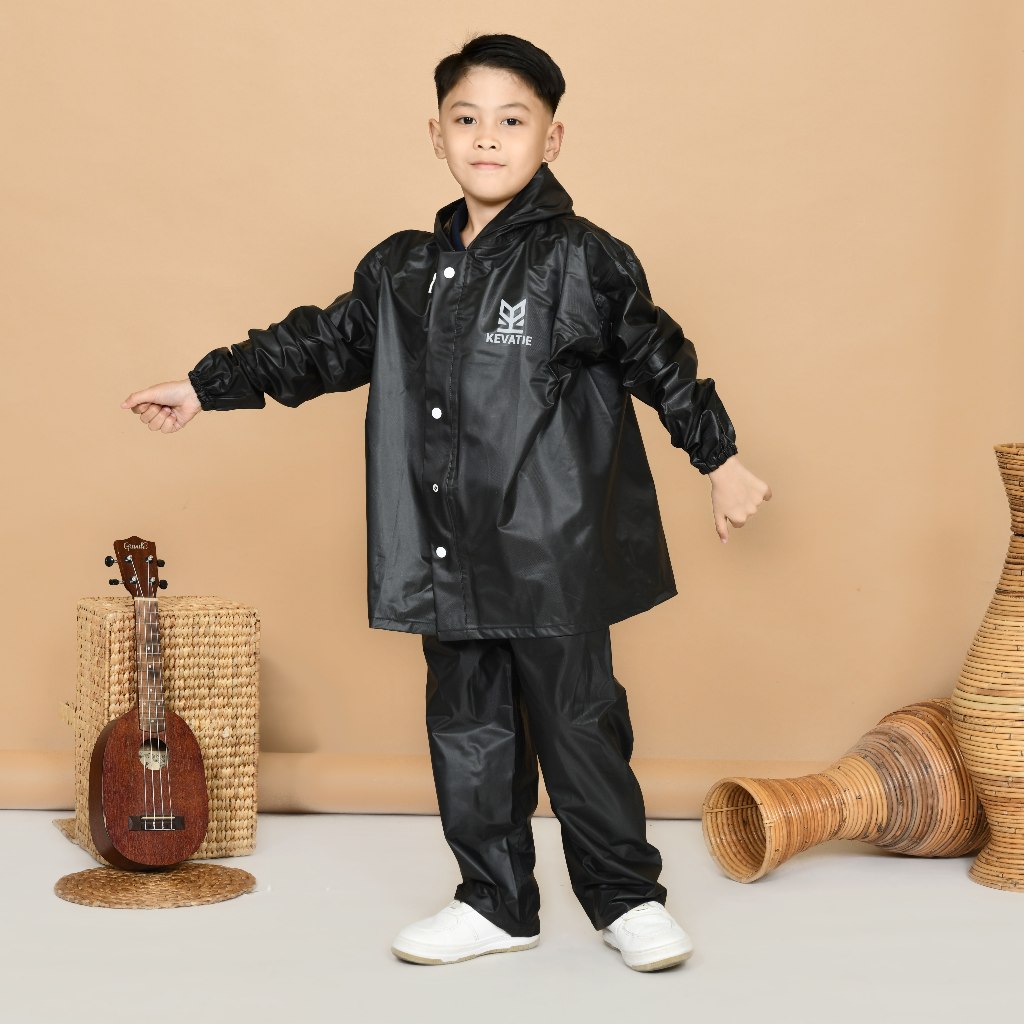 Jas Hujan Kevatie Rainwear Jas Hujan Anak Kevatie Hitam/Setelan Jas Hujan Anak Laki-Laki Dan Perempuan Usia 4-16 Tahun/K