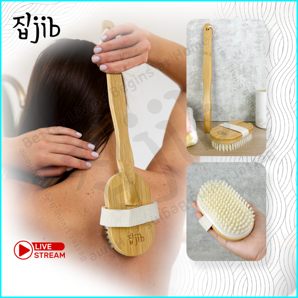 Jib Bamboo Bathing Brush Sikat Badan Gagang Panjang Sikat Mandi Pembersih Multifungsi Scrubber Penggosok Punggung