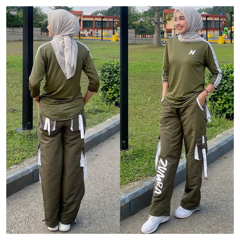 Mix Atasan Baju Senam N Petir Army Lis Putih dan Cargo Army Zumba lis Putih Senam Model List Bahan Polyster Spandek Alls