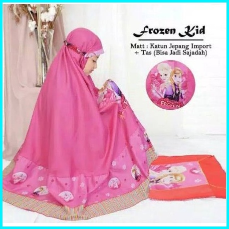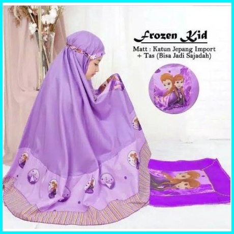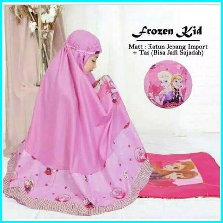Mukena Anak Frozen Kids 4 Size S M L Xl Umur 2 - 10 Tahun Set Sajadah Wajah Dan Tas Lipat