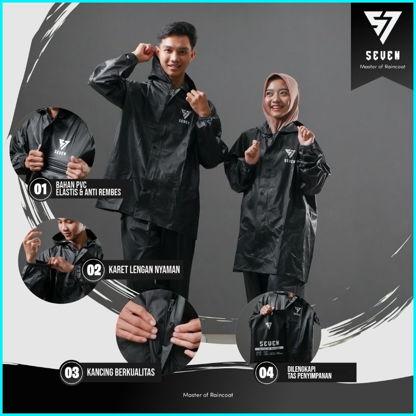 Jas Hujan Raincoat Mantel Bahan Karet Premium Pvc Tebal Kuat Elastis Anti Rembes Pria Dan Wanita Waterproof By Seven