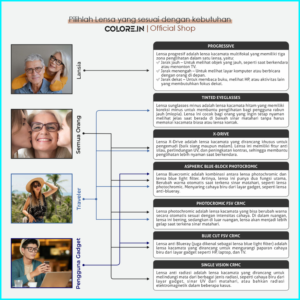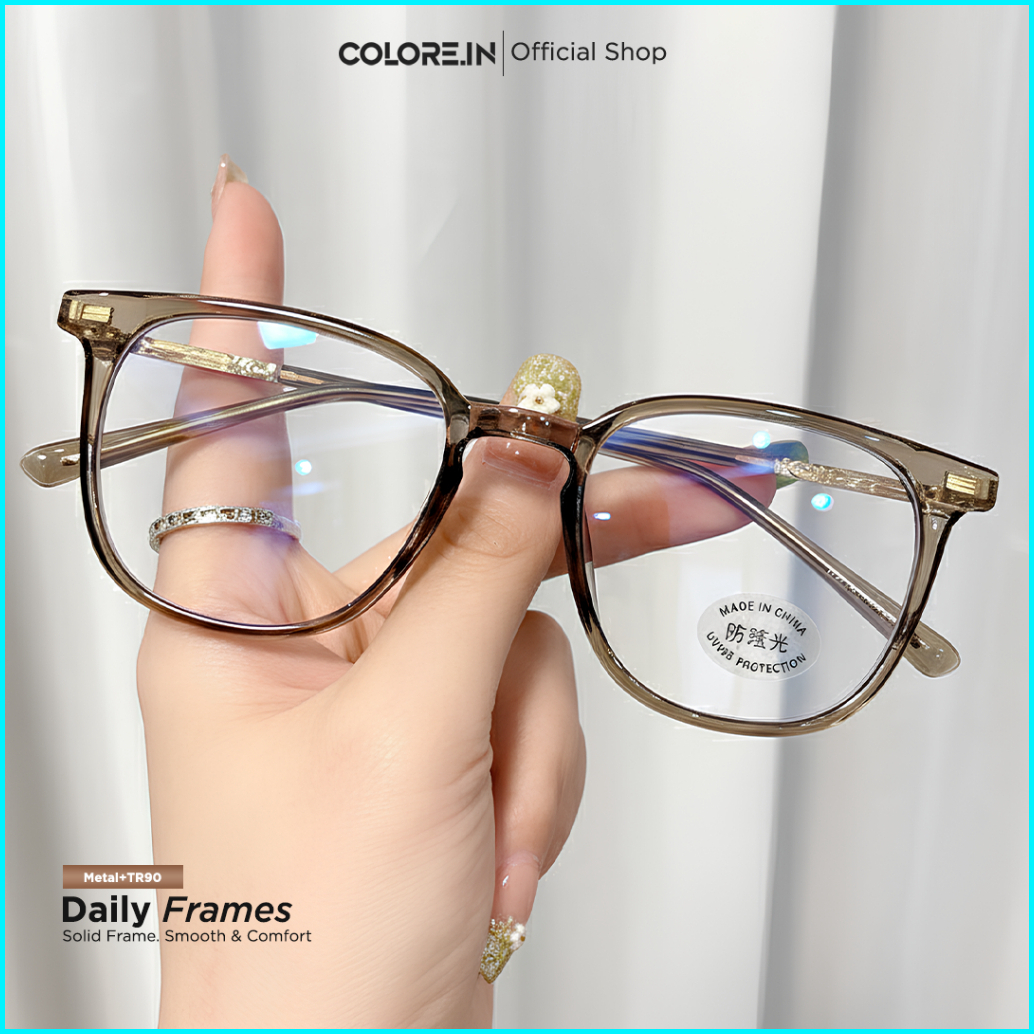 Colore.in Kacamata Photocromic Minus Anti Blueray Radiasi Bluecromic Fashion Sytle Wanita Bentuk Kotak Bahan Metal Tr-90