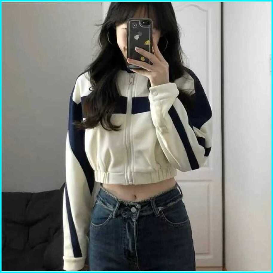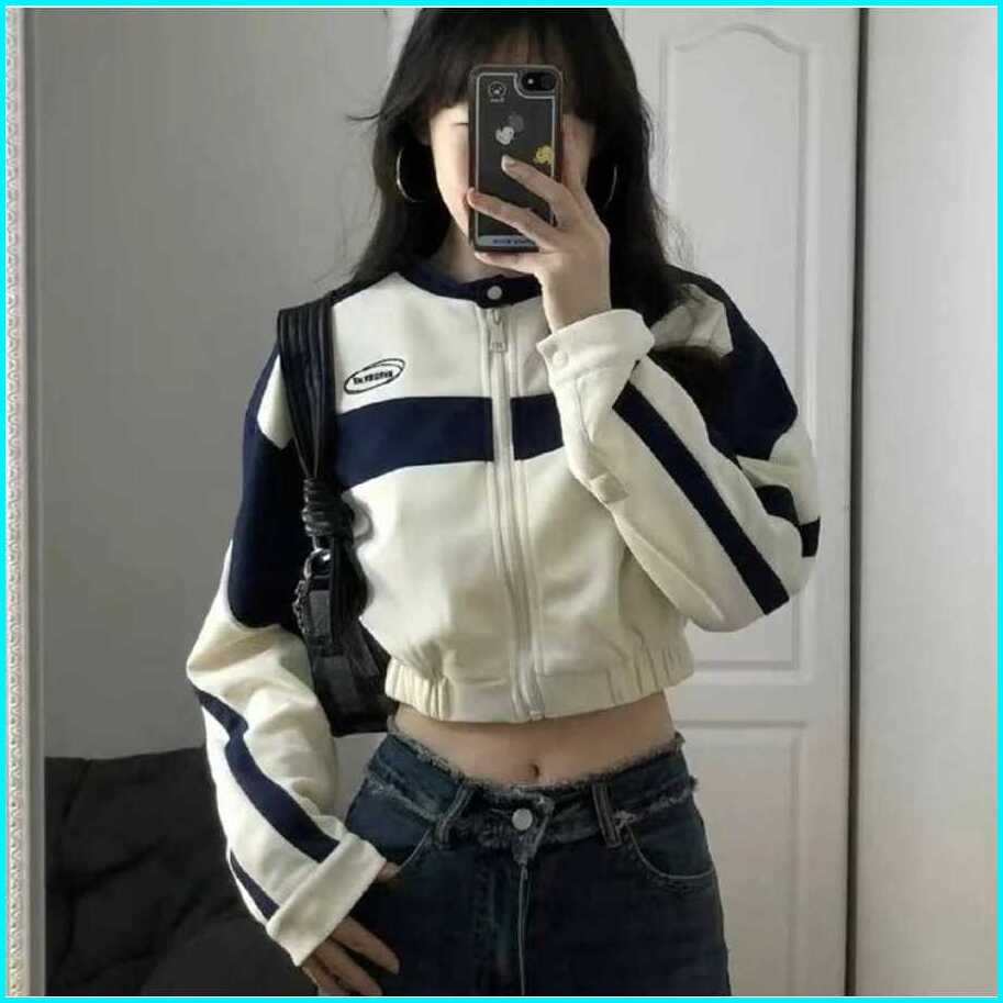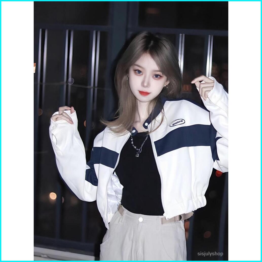 Jaket Crope Wanita Answer Me Croope Jacket Varsity Korean