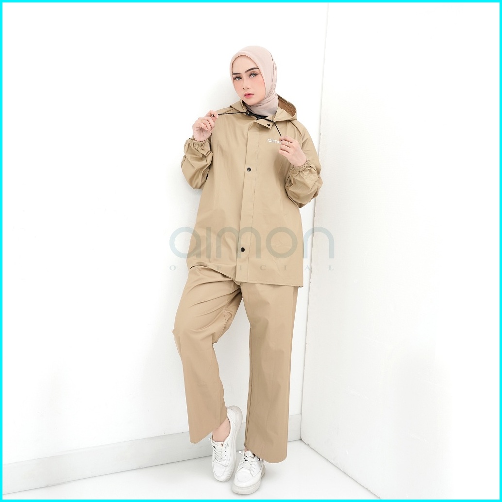 Aimon Jas Hujan Pria Wanita Tebal Warna Pastel Setelan Jaket Celana