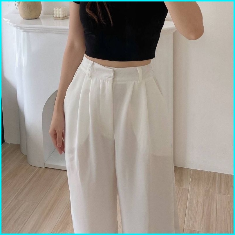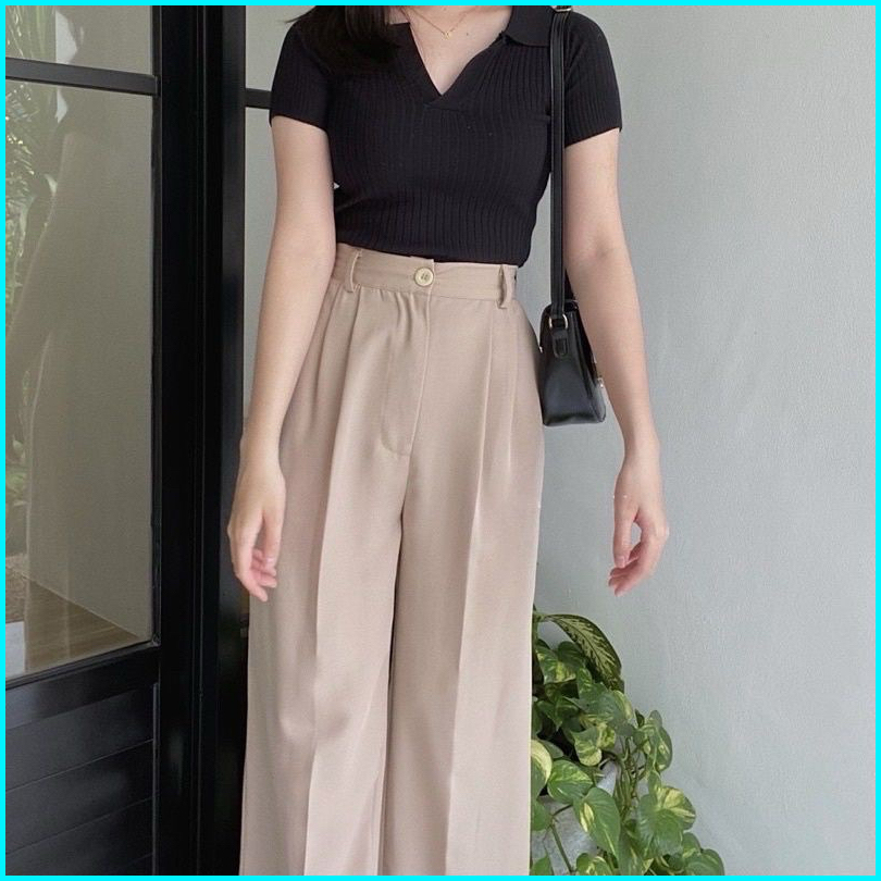 Haidar Id - Loose Pants Trousers Highwaist Polyester Celana Kulot Wanita Celana Kantor Wanita Celana Kerja Wanita Celana