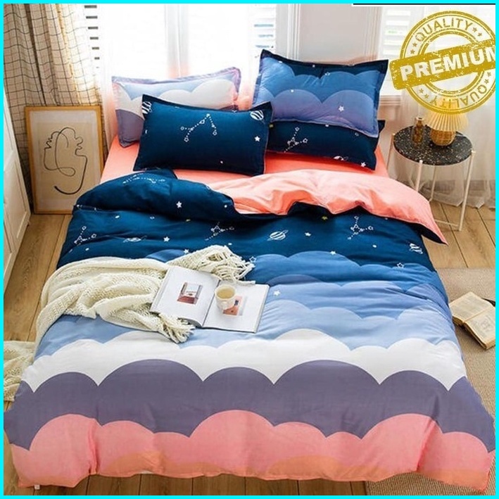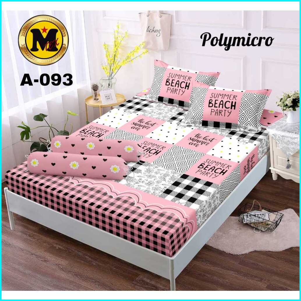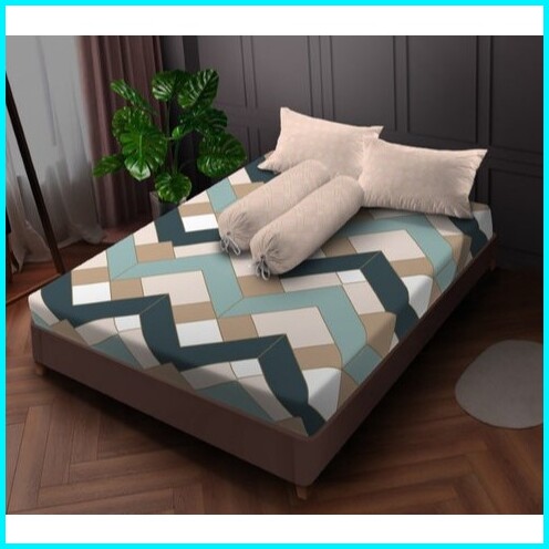 Seprei Motif Geometris Dengan Sarung Bantal Dan Sarung Guling - Motif Marble Pink