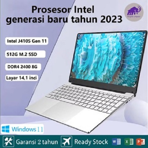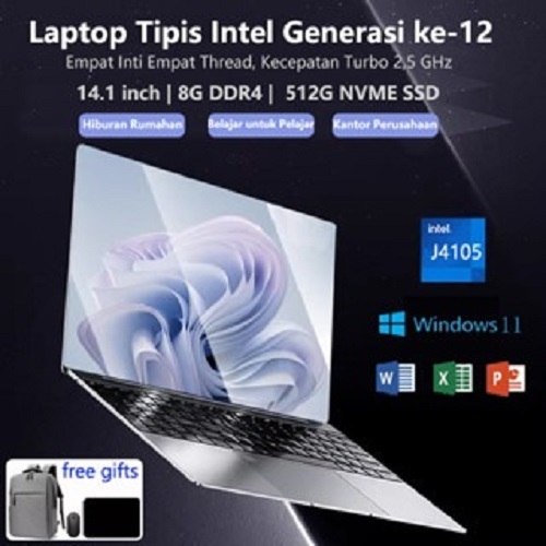 HW Notebook Super Tipis 2024 untuk Rumah, Kantor, dan Pelajar - Intel J4105, RAM 8GB DDR4, SSD 512GB, Bonus Mouse, Tas Ransel, Mouse Pad, Windows 11 & Office, Garansi 2 Tahun