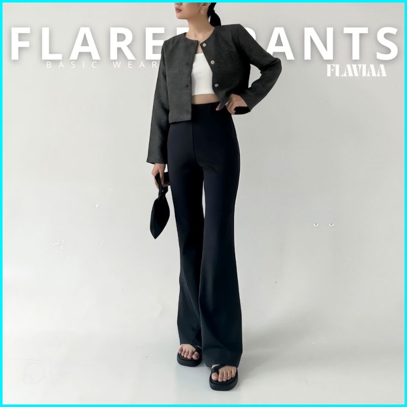 Celana Fit And Flare Pants Cutbray Knit Pinggang Highwaist Bahan Stretch Melar Kulot Cutbray Wanita
