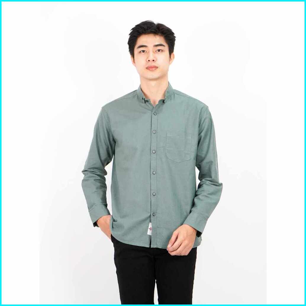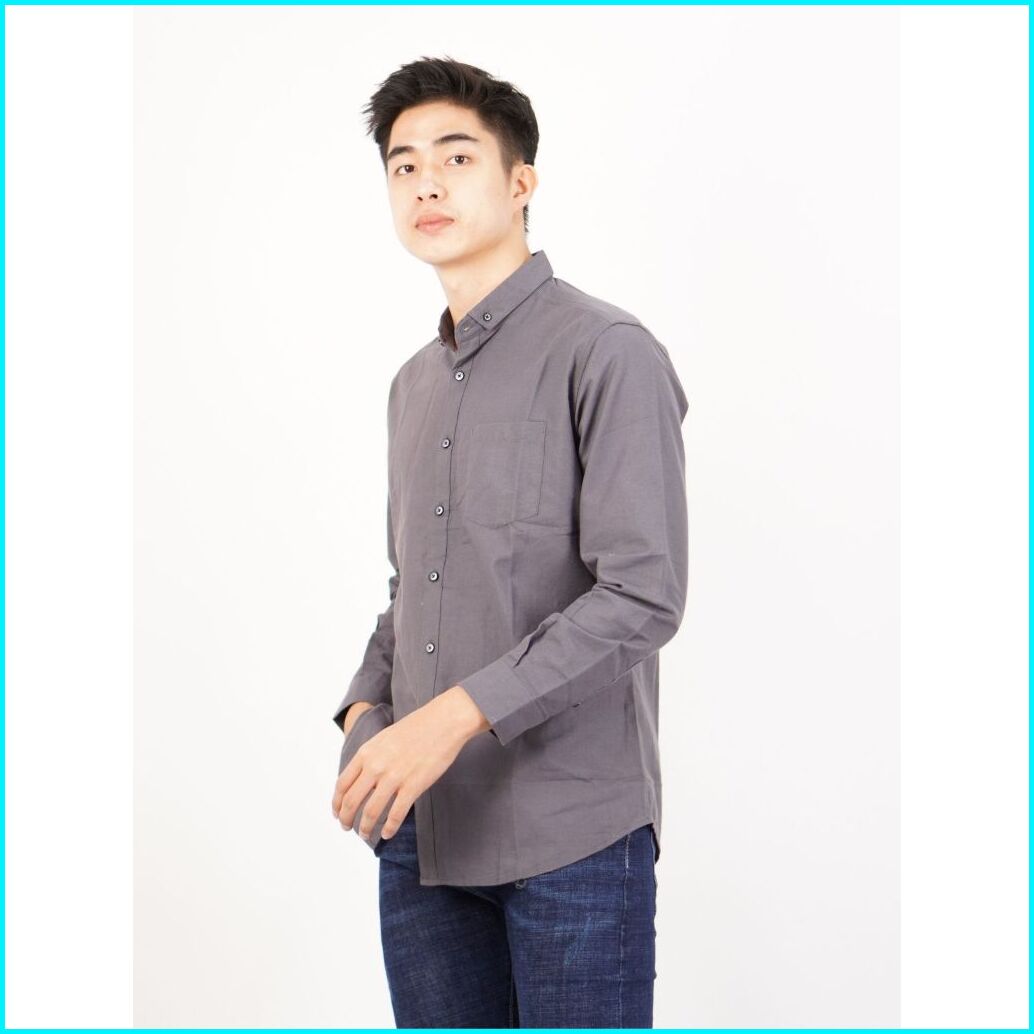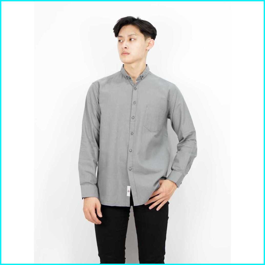 Swipe Up Last Stock Kemeja Pria Basic Polos Katun Rami Lengan Panjang Pendek
