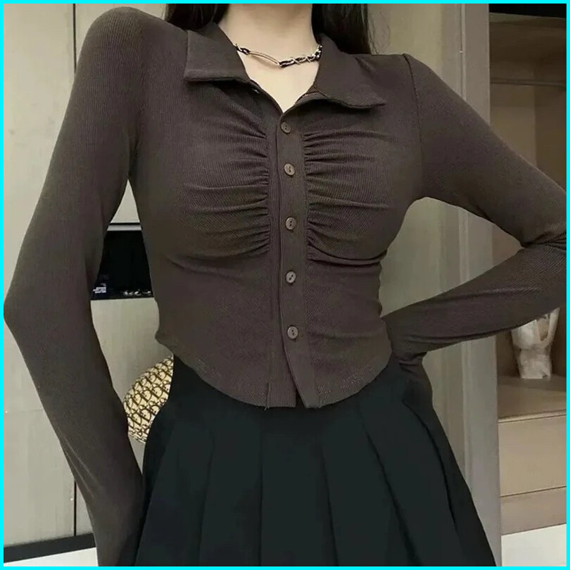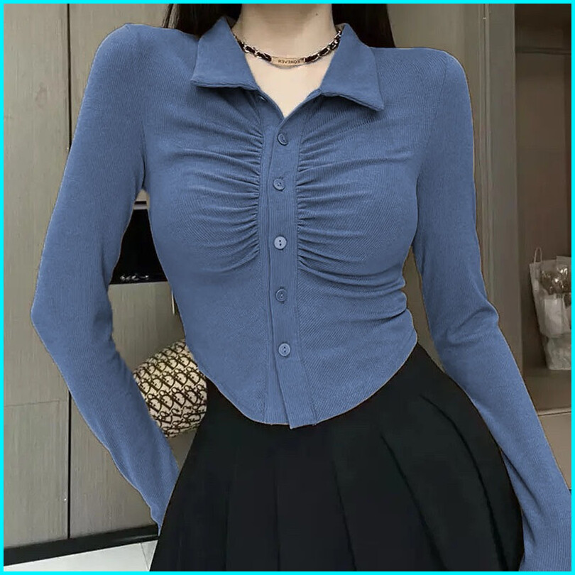 Blouse Korea - Blouse Crop - Hovia Blouse - Atasan Wanita Long Sleeve - Baju Lengan Panjang Wanita Knit Top Blouse Ribkn