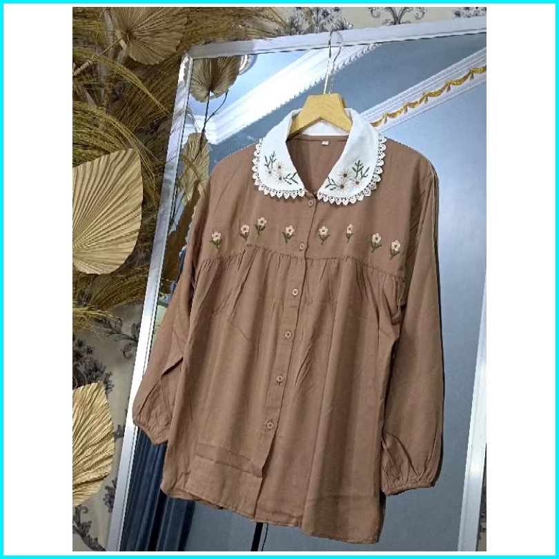 Ghavi Blouse Atasan Bordil Renda Bahan Rayon Tuwil Lengan Karet Busui Ferli